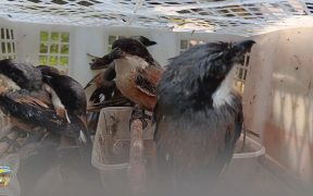 Sebanyak 51 burung Cendet atau Bentet Kelabu (Lanius schach) diamankan aparat di Pelabuhan Tanjung Perak, Surabaya, Rabu dini hari, 11 Februari 2026. Satwa tersebut dikirim dari Lombok, Nusa Tenggara Barat, menggunakan truk melalui jalur laut ...