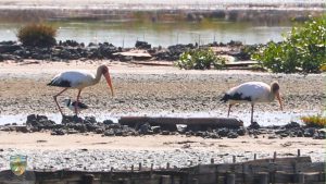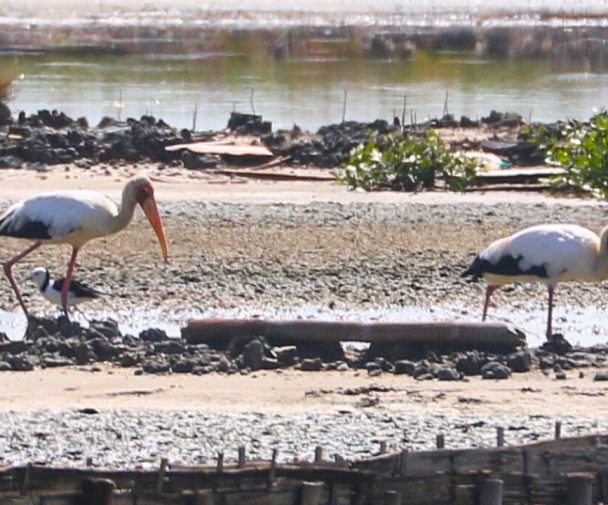 Sumenep – Enam individu Bangau Bluwok (Mycteria cinerea) terpantau di tambak garam Desa Gresik Putih, Kecamatan Gapura, Kabupaten Sumenep (27/02/26). ...