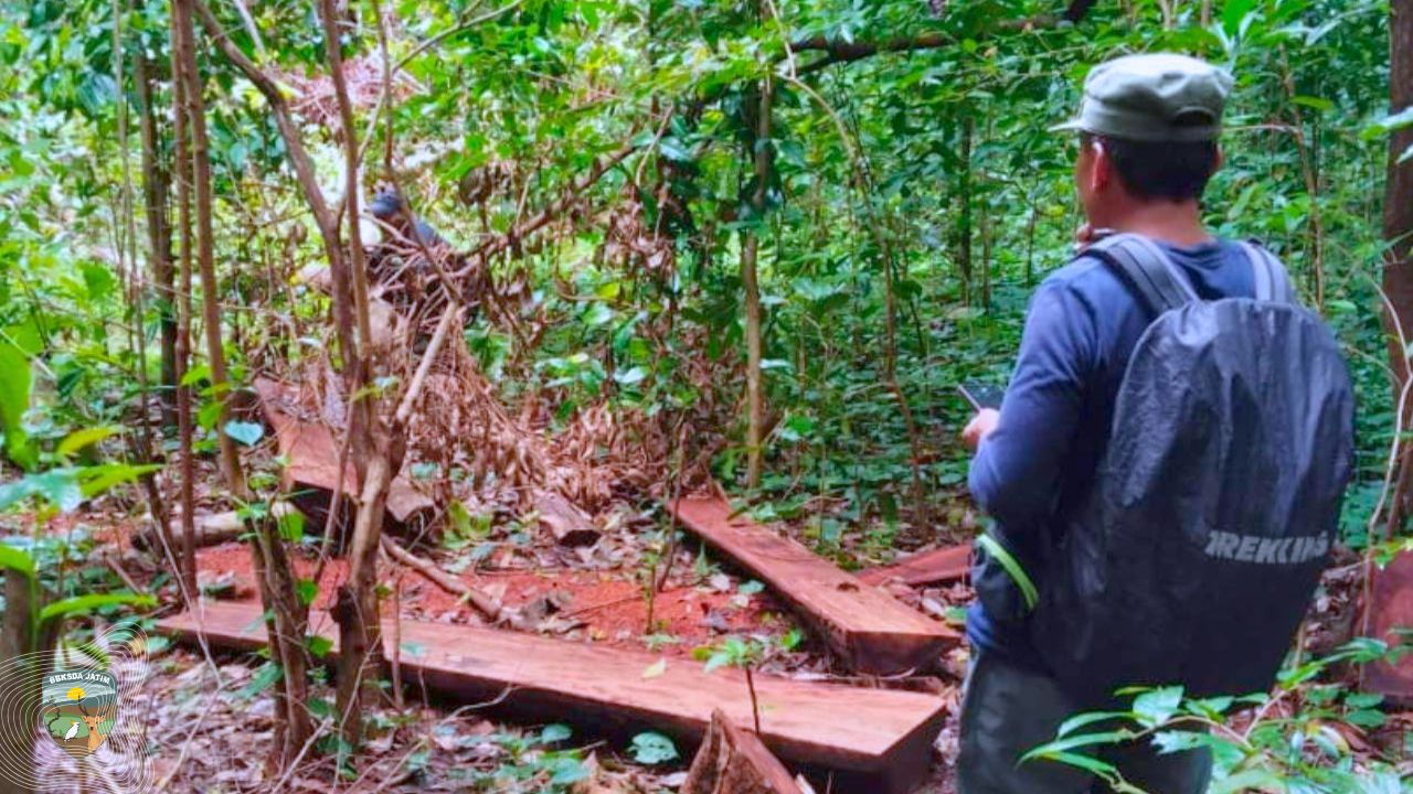 Namun, tidak semua yang ditemukan membawa kabar baik. Di beberapa grid patroli, tim mendapati bekas penebangan pohon. Empat pohon dari jenis berbeda tercatat telah ditebang. Tidak ada aktivitas yang terlihat saat itu, hanya sisa-sisa yang tertinggal, tunggak, potongan kayu, dan ruang terbuka kecil di antara vegetasi.