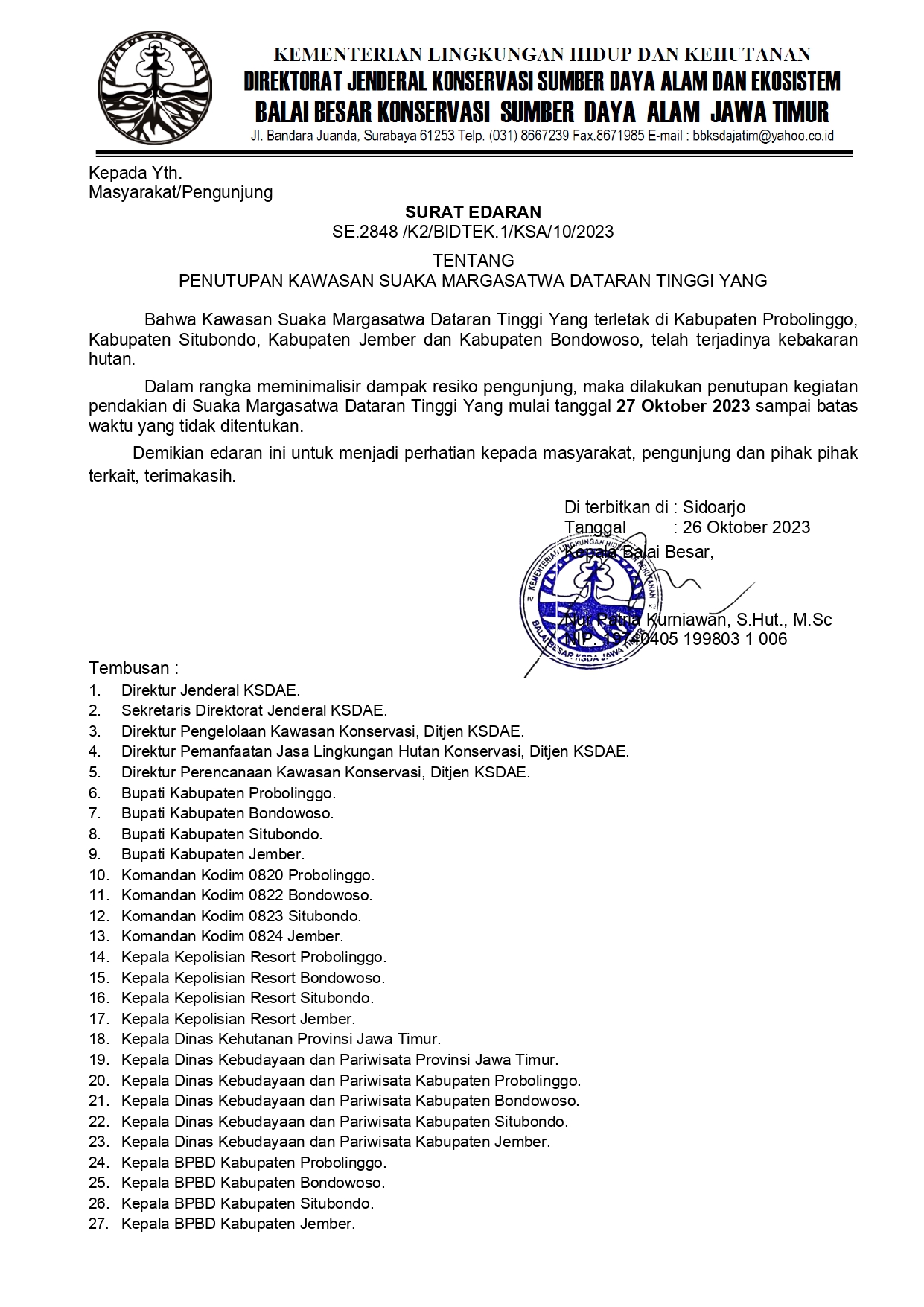 Kebakaran hutan melanda Kawasan Suaka Margasatwa Dataran Tinggi Yang terletak di 4 kabupaten, masing-masing Kabupaten Probolinggo, Kabupaten Situbondo, Kabupaten Jember dan Kabupaten Bondowoso. Untuk meminimalisir dampak resiko bagi pengunjung, maka BBKSDA Jawa Timur menutup kawasan yang lebih dikenal dengan Gunung Argopuro tersebut untuk kegiatan pendakian mulai tanggal 27 Oktober 2023 hingga batas waktu yang tidak ditentukan.