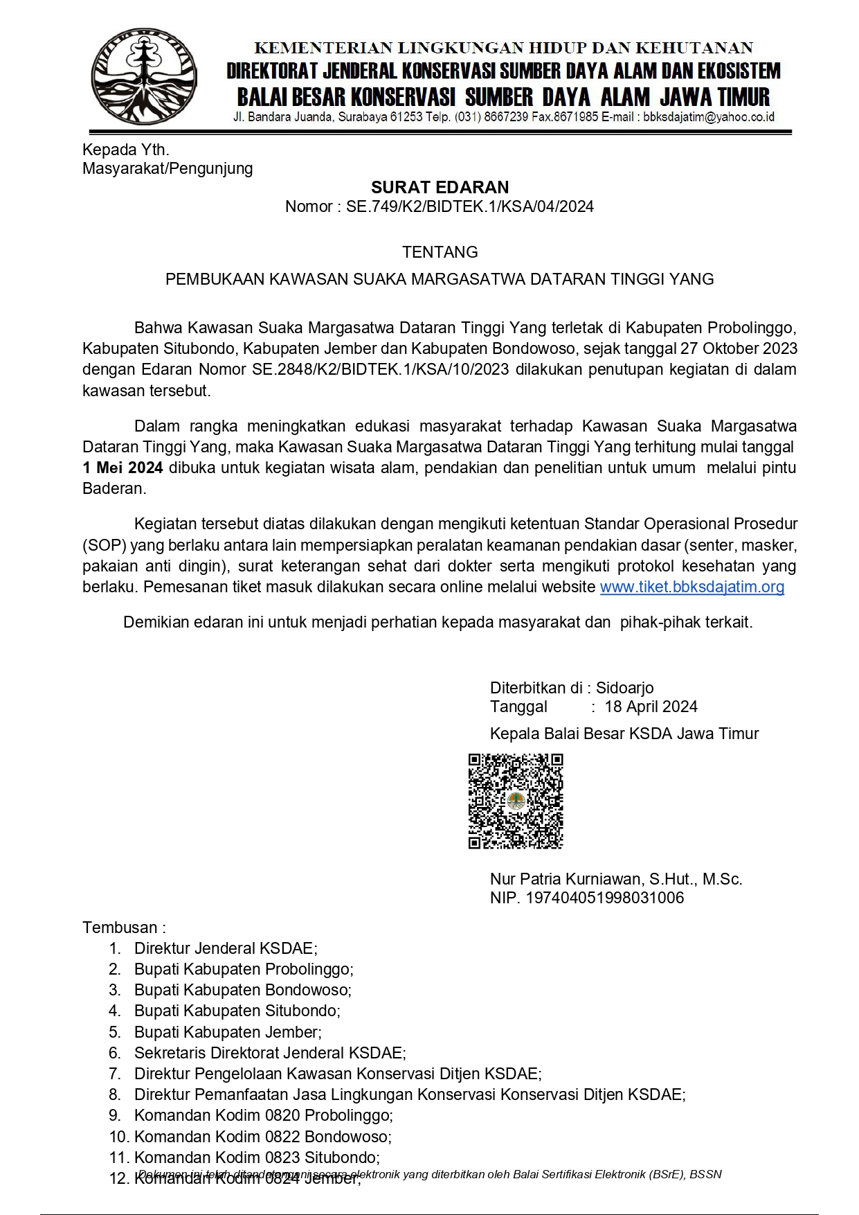 Untuk pemesanan tiket masuk hanya dilakukan secara online melalui website www.tiket.bbksdajatim.org. Jadi persiapkan segala sesuatunya, atur waktu, dan booking tiket segera secara online. Informasi lebih lanjut silahkan hubungi call centre dan media sosial di linktr.ee/bbksdajatim. (ak)