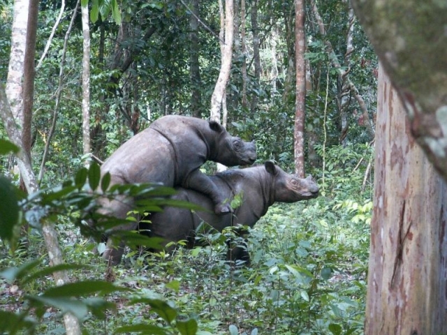 Mandi berkubang merupakan kegiatan rutin harian yang sangat penting bagi kehidupan badak. Mereka berkubang untuk mendinginkan tubuhnya, membebaskan dari gigitan lalat yang banyak menempel di tubuh, sampai menjaga kesehatan kulit badak agar tidak pecah-pecah.