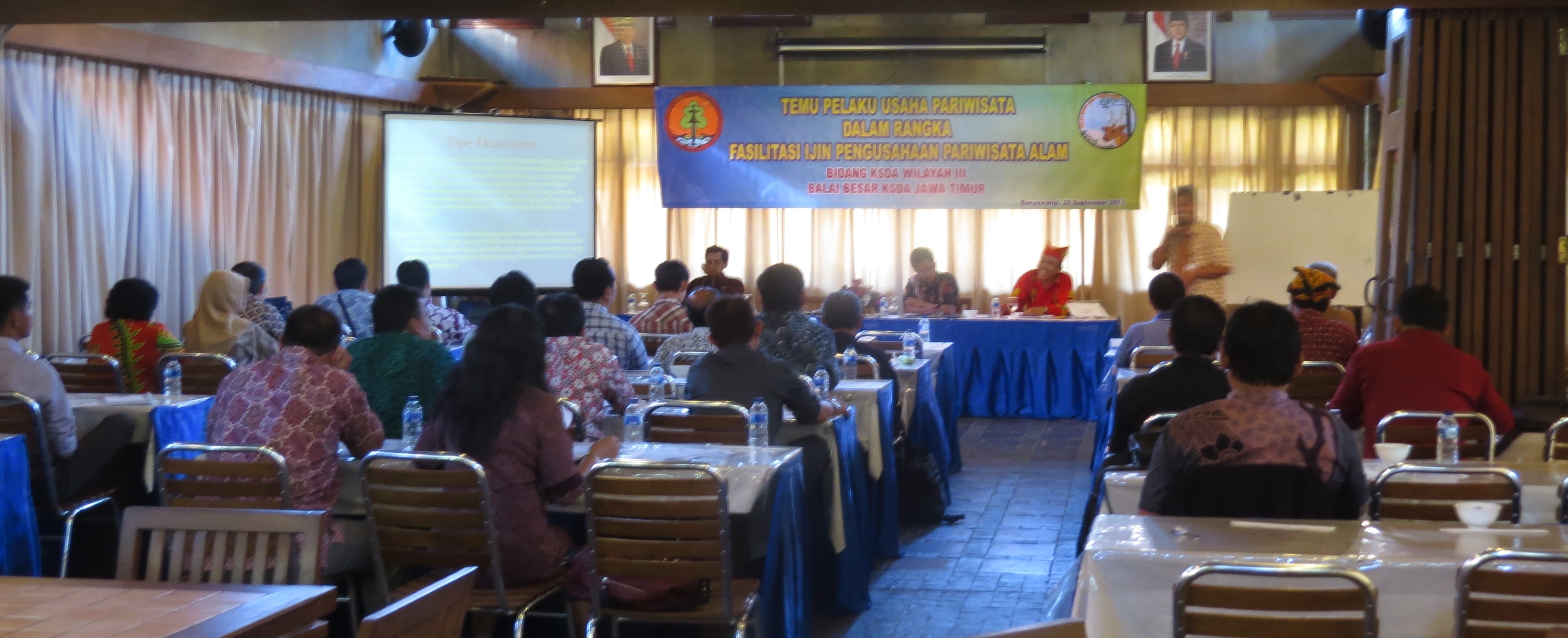 Bertempat di Hotel Ketapang Indah Banyuwangi (26/09/13) diadakan kegiatan “Temu Pelaku Usaha Pariwisata dalam rangka Fasilitasi Izin Pengusahaan Pariwisata Alam” yang ikuti oleh pengelola hotel di Banyuwangi dan Bondowoso, pengelola biro perjalanan di Banyuwangi, Bondowoso ...