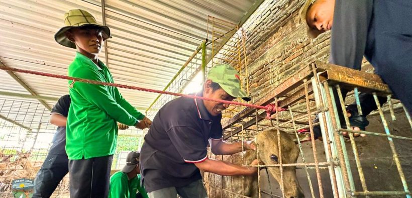 Air mengalir di sela kandang, membasahi sepatu petugas yang bergerak hati-hati membawa peralatan. Sebelum kegiatan dimulai, briefing singkat dilakukan di bawah naungan atap sederhana. Suara hujan membuat percakapan harus sedikit lebih keras, namun arah kerja tetap jelas, menjaga keselamatan satwa, menjaga efisiensi, dan memastikan proses berlangsung cepat.