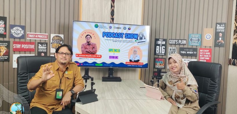 Kegiatan yang berlangsung di Direktorat Inovasi dan Pengembangan Pendidikan (DIPP) UNAIR ini menghadirkan Kepala Bidang Konservasi Sumber Daya Alam (KSDA) Wilayah II sebagai narasumber utama, dengan moderator drh. Lailatul Maghfiroh, drh., M.Si. Podcast ini mengangkat tema yang relevan dengan isu konservasi dan kesehatan, yakni “Potensi Risiko Penularan Zoonosis Akibat Perdagangan Satwa Liar di Provinsi Jawa Timur”.