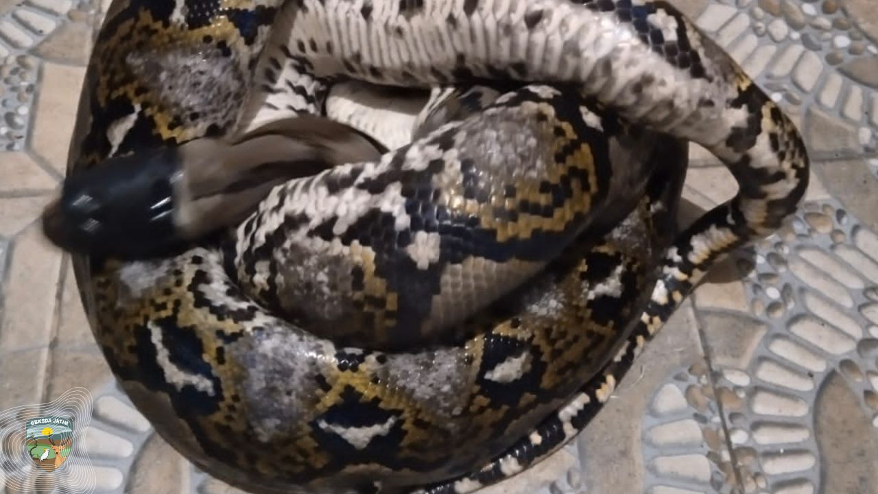 Berdasarkan keterangan warga, satwa diduga berasal dari rumah kosong di sebelah hunian, sebuah penanda klasik bagaimana celah-celah ruang kota kerap menjadi koridor satwa. Ular yang dievakuasi merupakan jenis Malaypython reticulatus, jenis yang tidak termasuk satwa dilindungi undang-undang.