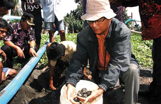 Setelah menerima sosialisasi terkait dengan konservasi penyu pada Jumat (17/4), nelayan Pantai Sobo langsung beraksi. Hasilnya, Rabu pagi (22/4) mereka mengamankan 109 butir telur penyu di bibir pantai tersebut.