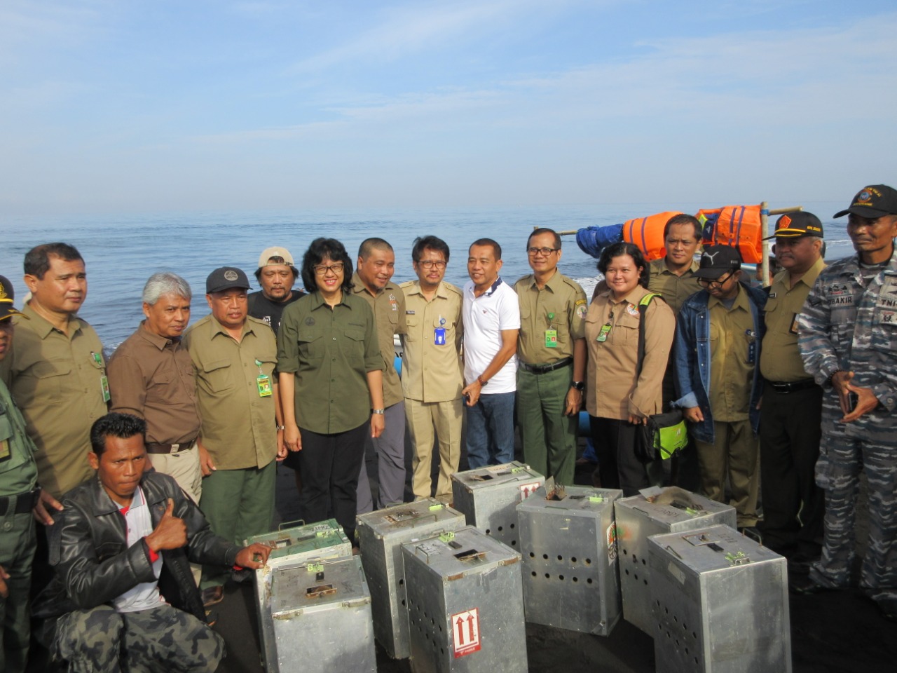 Direktur KKH melepas MEP menuju SM Pulau Nusa Barung tanggal 25 Maret 2019 Sekitar pukul 08.30 untuk dibawa ke kandang habituasi. Rombongan Kepala Balai Besar KSDA Jawa Timur bersama-sama dengan stakeholder terkait menuju SM Pulau Nusa Barung menyaksikan MEP di bawa ke Kandang Habituasi.