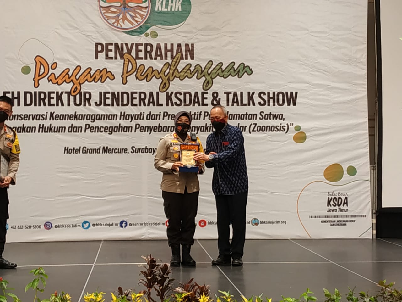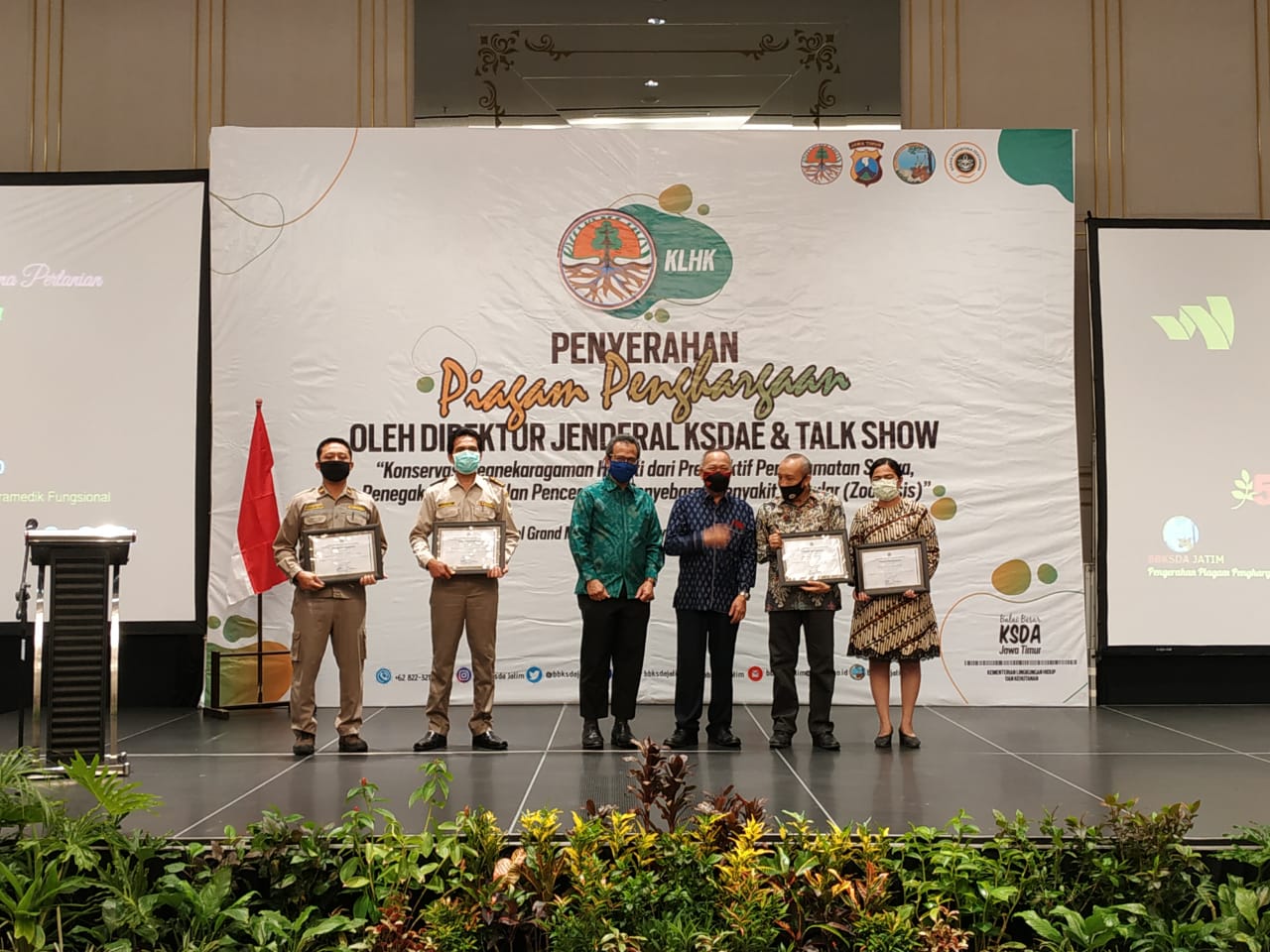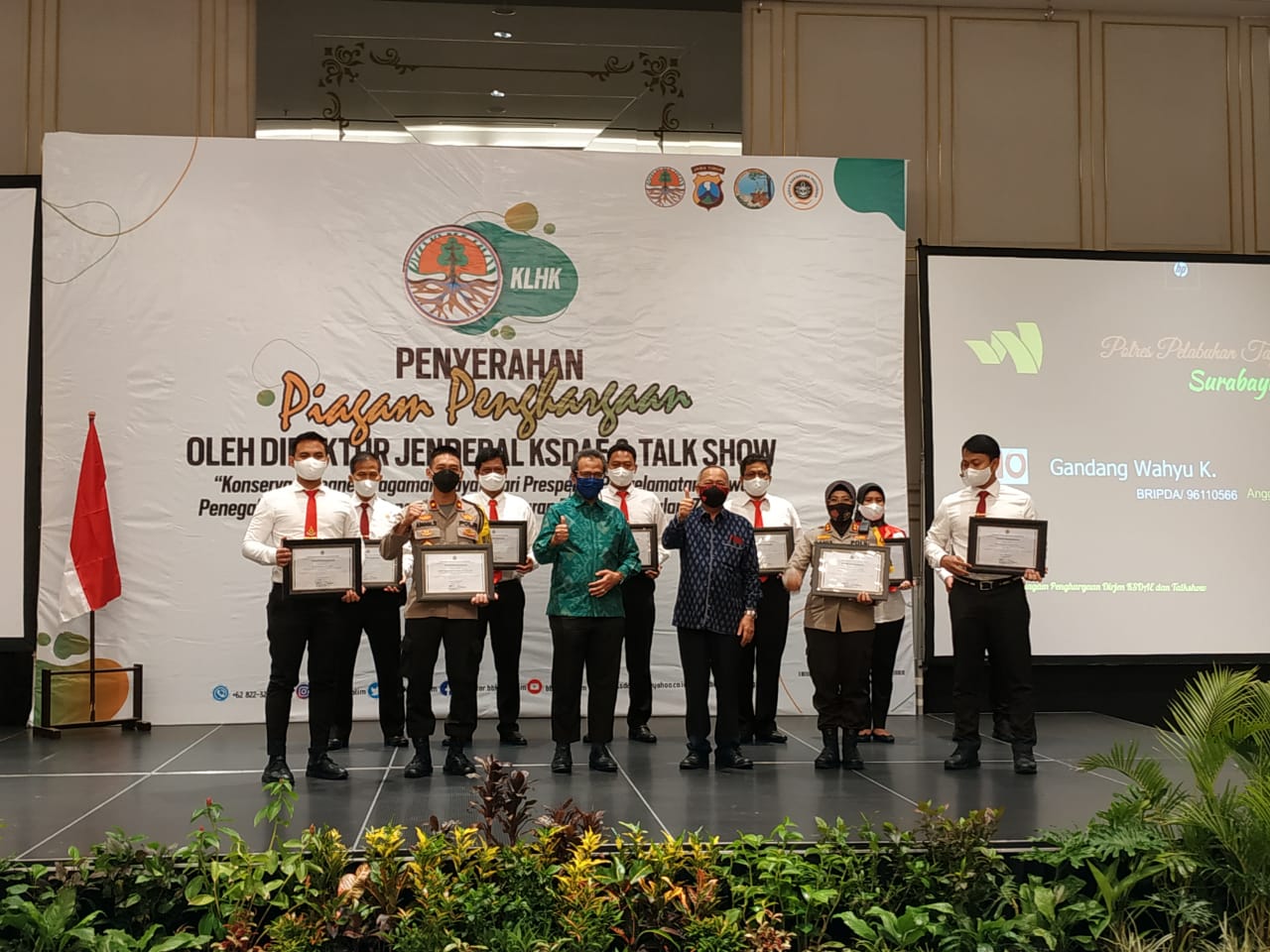 18 Desember 2020, Dirjen KSDAE menyampaikan piagam penghargaan sebagai bentuk apresiasi kepada 31 orang yang telah berperan aktif dalam upaya pengawasan dan pencegahan peredaran TSL secara ilegal.