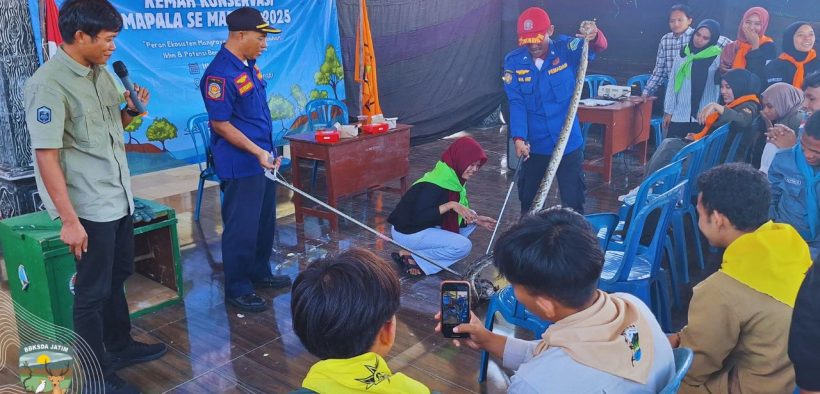 Namun, tidak hanya berhenti di ruang diskusi, para peserta juga terjun langsung ke lapangan, mulai dari latihan penanganan satwa liar konflik bersama Dinas Pemadam Kebakaran Pamekasan dan BBKSDA Jatim, hingga aksi bersih-bersih pantai sebagai bentuk nyata cinta lingkungan.