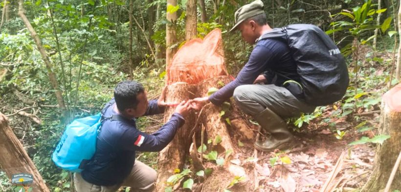 Namun pada salah satu grid pengawasan, bayang lain menyusup ke dalam narasi hutan. Di kedalamannya, sebuah pohon Pangopa, ditemukan tumbang akibat penebangan ilegal. Sebatang pohon, di tengah ratusan hektare tegakan. Angka yang tampak kecil, tetapi pada ekosistem pulau yang terisolasi, setiap kehilangan memiliki gema ekologis yang panjang.