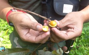 Tak lama memasuki cagar alam, tim patroli menjumpai sebuah ranting yang menarik perhatian. Selain daun, di ranting juga ada buah seperti melinjo, namun setelah dibuka dan dicicipi, rasa Pala langsung menyengat lidah. Saat kami lukai ...