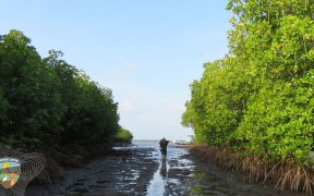Di antara riuh ombak yang memecah di tepian pulau dan desir angin asin yang menembus rimbun bakau, langkah-langkah tim survei bergema di antara akar-akar napas mangrove.