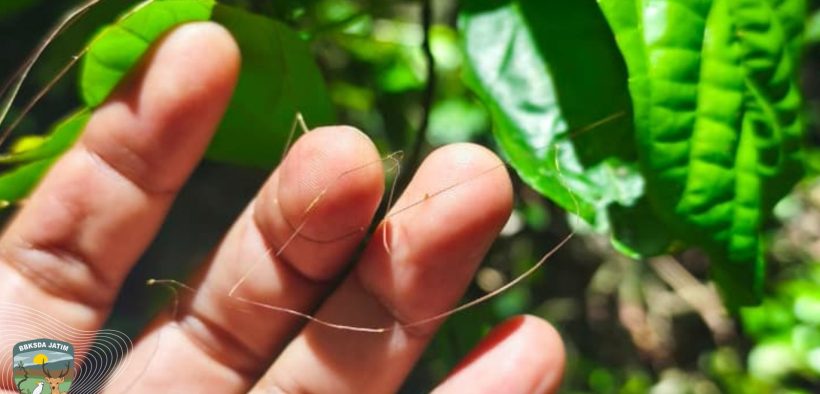 Di tengah suasana hening itu, tim survei lima taksa Balai Besar KSDA Jawa Timur melangkah menyusuri jalur basah di bawah kanopi, mencatat temuan vegetasi, satwa, dan tanda-tanda kehidupan lainnya. Namun, di sela dedaunan yang lapuk dan ranting berlumut, Tri Wahyu Widodo, Pengendali Ekosistem Hutan Mahir, menangkap sesuatu yang tak biasa. Di antara batang dan semak, terbentang serabut halus berwarna cokelat kehitaman, seperti tali kecil yang menjerat ranting dan daun kering.