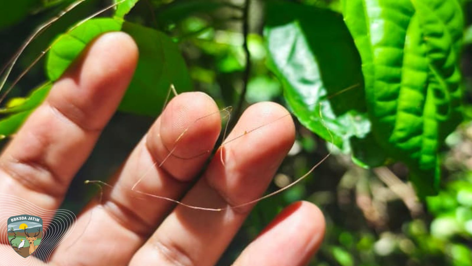 “Awalnya saya kira itu jejak senar pemburu yang tertinggal di hutan, Tapi setelah saya perhatikan lebih dekat, teksturnya aneh. Ia bukan nilon, bukan juga sisa tali buatan manusia. Benangnya sangat halus, ringan, dan menyatu dengan permukaan daun,” tutur Tri Wahyu.