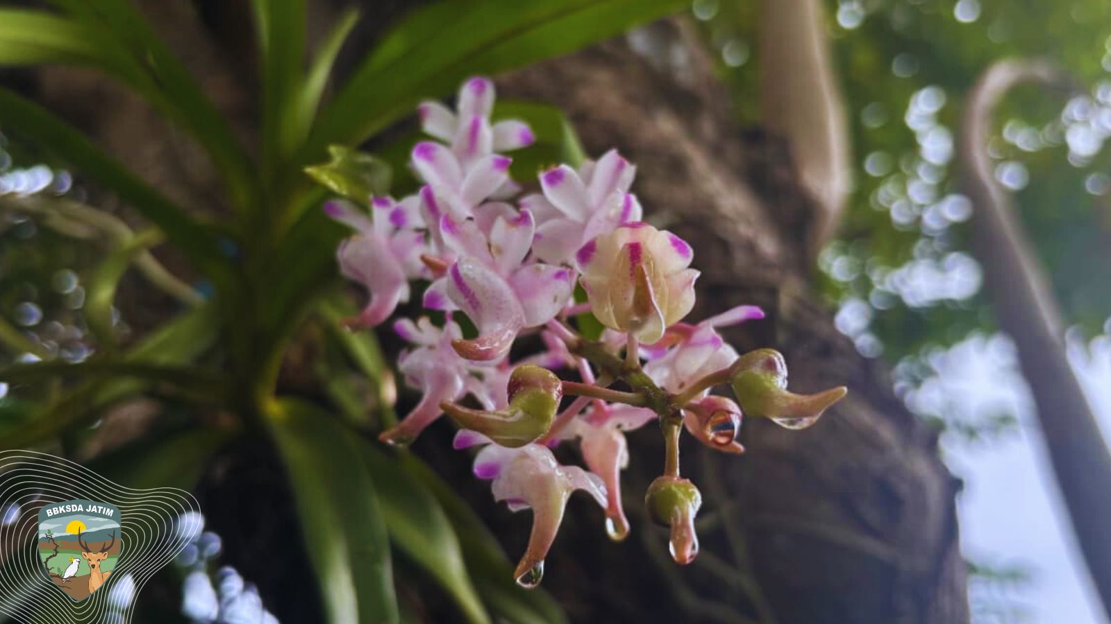 Namun pada Senin, 24 November 2025, misteri itu terpecahkan. Dari pucuk batang muncul bunga bercorak khas, memancarkan aroma lembut yang menjadi kunci identifikasi. Setelah di amati lebih detail, tim memastikan bahwa spesies tersebut adalah Anggrek Kuku Macan (Aerides odorata), anggrek hutan tropis dengan nilai ekologis tinggi dan distribusi alami yang kerap menjadi indikator kesehatan ekosistem.
